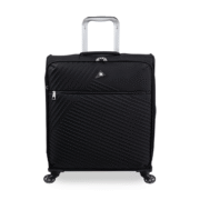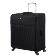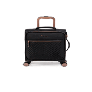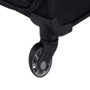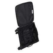 Padded foam moulded 3D front protects contents. Two easy-access front pockets. Comfort grab handles with extra padding. Telescopic trolley system. Fully lined interior with large zippered pocket and compression straps