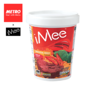 iMee Instant Cup Noodles Vegetable is a flavorful and healthy instant noodle dish that caters to vegetarian preferences. the clear broth is packed with a savory vegetable taste, enhanced by the addition of dried vegetables like carrots, mushrooms, and green onions. The noodles are cooked to perfection, offering a satisfying texture. The included seasoning packet adds a subtle umami flavor, rounding out the overall taste. This instant noodle option provides a nutritious and satisfying meal that is quick and easy to prepare, making it a convenient choice for vegetarians and those looking of a lighter option.